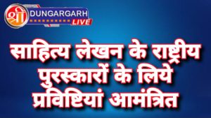 श्रीडूंगरगढ़ लाइव...21 मार्च 2023। बीकानेर। 15 जून तक स्वीकार होेंगे प्रस्ताव-प्रविष्टियां । 14 सितम्बर को किया जाएगा पुरस्कृत हिन्दी व...