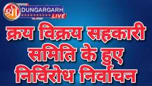 श्रीडूंगरगढ़ लाइव...11 अप्रेल 2023। क्रय विक्रय सहकारी समिति बीकानेर कोलायत में हरिराम सियाग स्वरूपदेसर को निर्विरोध अध्यक्ष व कृष्ण कुमार नायक...
