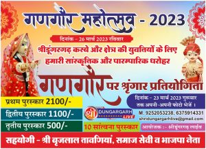श्रीडूंगरगढ़ लाइव...22 मार्च 2023।प्रिय पाठकों,इस गणगौर महोत्सव पर श्रीडूंगरगढ़ ने आप सभी मातृशक्ति के लिये श्रृंगार प्रतियोगिता का आयोजन किया...
