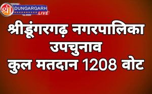 श्रीडूंगरगढ़ लाइव...07 मई 2023। श्रीडूंगरगढ़ नगरपालिका उपचुनाव में कुल मतदान 1208 रहा। कुल 78.33% मतदान हुआ। कुल 625 पुरुष मतदाता...