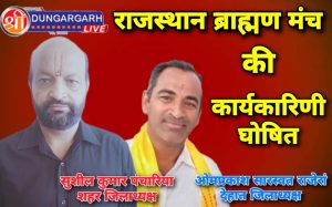 श्रीडूंगरगढ़ लाइव...07 मई 2023।बीकानेर/जयपुर 07 मई। राजस्थान ब्राह्मण महासभा के प्रदेशाध्यक्ष केशरीचंद शर्मा सरदारशहर द्वारा प्रदेश कार्यसमिति की घोषणा की...