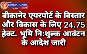 श्रीडूंगरगढ़ लाइव...17 मई 2023। राजस्व विभाग द्वारा बीकानेर हवाई अड्डे के विस्तार और विकास के लिए 24.75 हेक्ट. भूमि निःशुल्क आवंटित...
