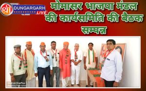 श्रीडूंगरगढ़ लाइव...25 मई 2023। भारतीय जनता पार्टी श्रीडूंगरगढ़ कार्यालय में आज मोमासर मण्डल कार्यसमिति की बैठक सम्पन्न हुई। पण्डित दीनदयाल...