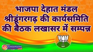 श्रीडूंगरगढ़ लाइव...27 मई 2023। भाजपा देहात मंडल श्रीडूंगरगढ़ की बैठक कल 26 मई को लखासर मंदिर परिसर में भैरुनाथ के...