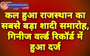 श्रीडूंगरगढ़ लाइव...27 मई 2023।राजस्थान में अब तब का सबसे बड़ा सामूहिक विवाह हुआ है। यह विवाह राजस्थान का ही नहीं...