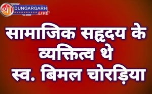श्रीडूंगरगढ़ लाइव 28 मई 2023।मानवाधिकार एव आरटीआई जागरूकता समिति के प्रदेशाध्यक्ष एव समाजिक सामाजिक कार्यकर्ता स्व. बिमल चोरड़िया के आकस्मिक...