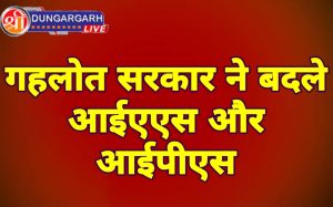 श्रीडूंगरगढ़ लाइव 18 जून 2023। राजस्थान में गहलोत सरकार ने 6 आईएएस और 11 आईपीएस अफसरों के तबादले कर दिए...