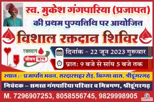 श्रीडूंगरगढ़ लाइव 18 जून 2023।बीकानेर जिले में श्रीडूंगरगढ़ क्षेत्र सबसे ज्यादा रक्तदान करने और शिविर आयोजित करने वाला क्षेत्र...