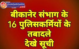 श्रीडूंगरगढ़ लाइव 20 जून 2023। बीकानेरसंभाग के पुलिस महकमे में चार वर्ष आधारित तबादला नीति के तहत स्थानान्तरण किये गए...