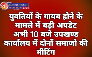 श्रीडूंगरगढ़ लाइव 03 जुलाई 2023। श्रीडूंगरगढ़ से गायब दो युवतियों के प्रकरण में आज अभी रात्रि 10 बजे उपखण्ड कार्यालय...
