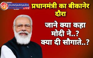 श्रीडूंगरगढ़ लाइव 08 जुलाई 2023। प्रधानमंत्री नरेन्द्र मोदी बीकानेर नोरंगदेसर पहुंचे और मंच पर प्रधानमंत्री मोदी का कार्यकार्ताओं ने जोरदार...