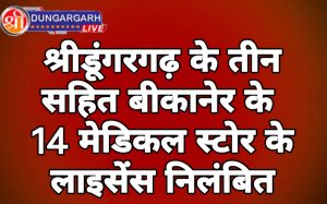 श्रीडूंगरगढ़ लाइव 11 जुलाई 2023। जांच के दौरान विभिन्न अनियमितताएं पाए जाने पर 14 मेडिकल स्टोर्स के अनुज्ञापत्र निलम्बित किए...