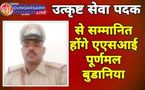 श्रीडूंगरगढ़ लाइव 12 जुलाई 2023। राजस्थान पुलिस महानिदेशक द्वारा वर्ष 2021 के लिए पुलिस अफसरों को अति उत्कृष्ट सेवा पदक और...
