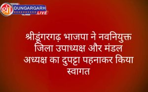 श्रीडूंगरगढ़ लाइव न्युज 12 जुलाई 2023 भारतीय जनता पार्टी कार्यालय श्री डूंगरगढ़ में पार्टी कार्यों की गतिविधि के दौरान नवनियुक्त...