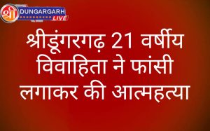 श्रीडूंगरगढ़ लाइव न्युज 15 जुलाई 2023 श्रीडूंगरगढ़ से बड़ी खबर विवाहिता ने फांसी का फंदा लगाकर की आत्महत्या । शेरूणा...