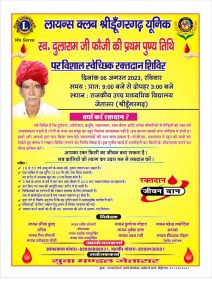 श्रीडूंगरगढ़ लाइव न्युज 1 अगस्त 2023 श्रीडूंगरगढ़ ग्राम जेतासर मे स्व दुलाराम जी गोदारा फौजी की प्रथम पुण्यतिथि पर विशाल...