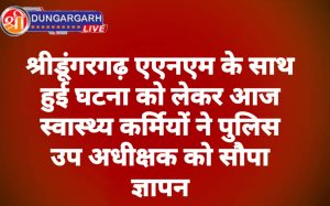 श्रीडूंगरगढ़ लाइव न्युज 23 अगस्त 2023 आज बड़ी संख्या में महिला स्वास्थ्यकर्मी पुलिस उपाधीक्षक विकी नागपाल के कार्यालय पहुंची और...