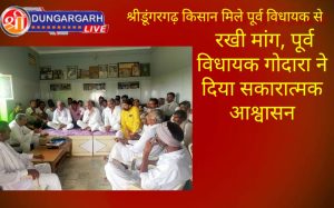 श्रीडूंगरगढ़ किसान मिले पूर्व विधायक से रखी ये मांग, पूर्व विधायक गोदारा ने दिया सकारात्मक आश्वासन ।