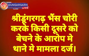 श्रीडूंगरगढ़ लाइव न्युज 26 अगस्त 2023 श्रीडूंगरगढ़ भैंस चोरी करके किसी दूसरे को बेचने के आरोप मे मुकदमा दर्ज हुआ...