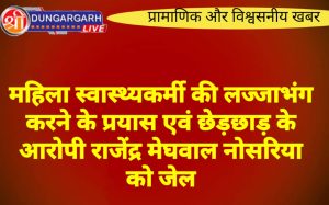 श्रीडूंगरगढ़ लाइव न्युज 2 सितंबर2023 श्रीडूंगरगढ़ क्षेत्र के मिंगसरिया गांव में गत दिनों महिला स्वास्थ्यकर्मी के साथ छेड़छाड़ करने, धमकाने,...