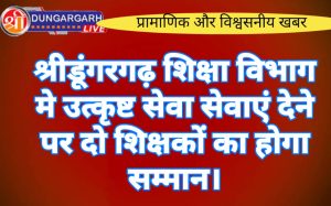 श्रीडूंगरगढ़ लाइव न्युज 4 सितंबर 2023 कल शिक्षक दिवस पर उपखण्ड स्तरीय शिक्षक सम्मान समारोह में शिक्षा विभाग में उत्कृष्ट...