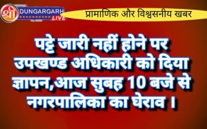 श्रीडूंगरगढ़ लाइव न्युज 5 सितंबर2023 श्रीडूंगरगढ़ के वार्ड नं 15-16 के वार्डवासियों ने कल सोमवार को उपखण्ड अधिकारी के नाम...