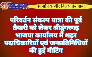 श्रीडूंगरगढ़ लाइव न्युज 5 सितंबर2023 भारतीय जनता पार्टी कार्यालय श्रीडूंगरगढ़ में परिवर्तन संकल्प यात्रा की पूर्व तैयारी को लेकर मीटिंग...