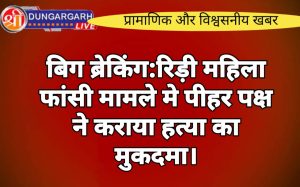 श्रीडूंगरगढ़ लाइव न्युज 8 सितंबर 2023 श्रीडूंगरगढ़ के गांव रिड़ी में एक विवाहिता ने ससुराल वालों के द्वारा शारीरिक, मानसिक...