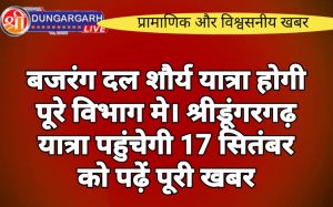 श्रीडूंगरगढ़ लाइव न्युज 8 सितंबर 2023 विश्व हिन्दु परिषद व बजरंग दल की केन्द्रीय योजनानुसार सम्पूर्ण भारत वर्ष में बजरंग...
