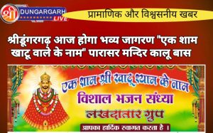 श्रीडूंगरगढ़ लाइव न्युज 8 सितंबर2023 श्रीडूंगरगढ़ आज होगा विशाल भव्य जागरण एक शाम खाटू वाले के नाम । कालू बास...