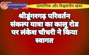 श्रीडूंगरगढ़ लाइव न्युज 10 सितंबर-2023 परिवर्तन संकल्प यात्रा के श्रीडूंगरगढ़ आगमन पर कालू रोड पर भाजपा नेत्री लकेश चौधरी ने...