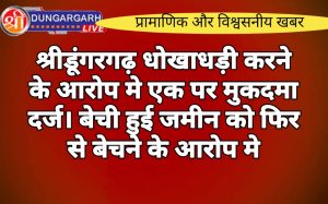 श्रीडूंगरगढ़ लाइव न्युज 14 सितंबर 2023 श्रीडूंगरगढ़ बेची हुई जमीन को फिर से बेचने के आरोप मे एक पर मुकदमा...
