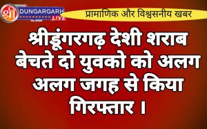 श्रीडूंगरगढ़ लाइव न्युज 15 सितंबर 2023 देशी शराब बेचते दो युवकों को अलग अलग जगह से गिरफ्तार किया है पहला...