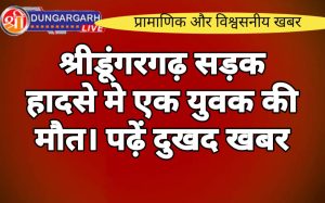 श्रीडूंगरगढ़ लाइव न्युज 16 सितंबर-2023 श्रीडूंगरगढ़ कस्बे के लिए शुक्रवार शाम एक दुखद खबर के साथ अस्त हुई। नजदीकी कस्बे...