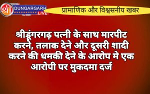 श्रीडूंगरगढ़ लाइव न्युज 16 सितंबर2023 श्रीडूंगरगढ़ एक महिला ने अपने पति पर आरोप लगाते हुवे थाने मे मुकदमा दर्ज करवाया...