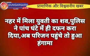 श्रीडूंगरगढ़ लाइव न्युज 16 सितंबर-2023 लूणकरनसर तहसील के मलकीसर पंपिंग स्टेशन पर शुक्रवार को मिले युवती के शव को पुलिस...