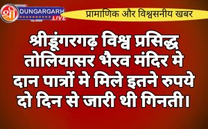 श्रीडूंगरगढ़ लाइव न्युज 16 सितंबर2023 श्रीडूंगरगढ़ विश्व प्रसिद्ध तोलियासर काल भैरव मंदिर के दान पात्र कल खोलेने के बाद दो...