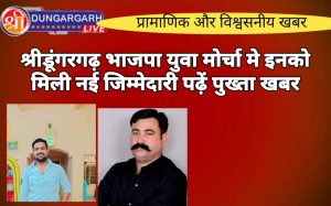 श्रीडूंगरगढ़ लाइव न्युज 16 सितंबर-2023 भाजयुमो बीकानेर देहात जिलाध्यक्ष जसराज सिंवर ने की श्रीडूंगरगढ़ विधानसभा के बापेऊ और शहर मंडल...