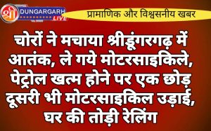 श्रीडूंगरगढ़ लाइव न्युज 19 सितंबर-2023 ।क्षेत्र में चोरों की सेंधमारी बढ़ती जा रही है। खबर मिली है कि कल देर...