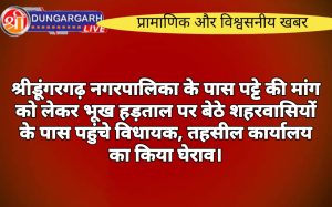 श्रीडूंगरगढ़ लाइव न्युज 19 सितंबर2023 श्रीडूंगरगढ़ नगरपालिका के पास धरने पर बेठे शहरवासियों के पास पहुंचे विधायक गिरधारी लाल महिया।...
