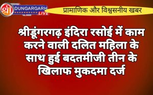 श्रीडूंगरगढ़ लाइव न्युज 19 सितंबर2023 श्रीडूंगरगढ़ क्षेत्र के धीरदेशर चोटिया गांव में इंदिरा रसोई पर कार्यरत एक दलित महिला के साथ...