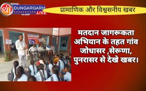 श्रीडूंगरगढ़ लाइव न्युज 19 सितंबर2023 श्रीडूँगरगढ़ उपखंड परिक्षेत्र की ग्राम पंचायतों जोधासर, शेरुणा और पूनरासर पंचायतों के राउमावि जोधासर ,राउमावि...