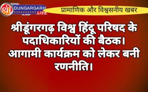 श्रीडूंगरगढ़ लाइव न्यूज़ 27 अक्टूबर 2023 श्रीडूंगरगढ आज दोपहर 12 बजे विश्व हिंदू परिषद के पदाधिकारियों की विशेस बैठक संपन्न...