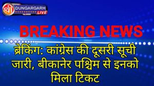 श्रीडूंगरगढ़ लाइव न्यूज़ 22 अक्टूबर 2023 विधानसभा चुनावों को लेकर कांग्रेस ने अपनी दूसरी सूची जारी कर दी है। दूसरी...