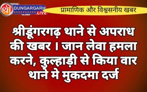 श्रीडूंगरगढ़ लाइव न्युज 2 अक्टूबर 2023 श्रीडूंगरगढ़ थाने मे मारपीट और अपराध का मुकदमा दर्ज किया पीड़ित सूर्यप्रकाश पुत्र किशनदास...