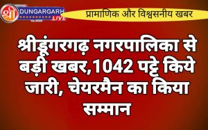 श्रीडूंगरगढ़ लाइव न्युज 5अक्टूबर 2023 श्रीडूंगरगढ़ नगर पालिका ने रचा इतिहास आज 1 दिन में 1042 आवासीय पट्टे वितरित किए...