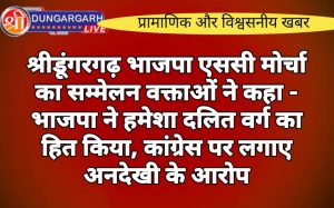 श्रीडूंगरगढ़ लाइव न्युज 5अक्टूबर 2023 श्रीडूंगरगढ़ भाजपा एससी मोर्चा द्वारा आयोजित श्रीडूंगरगढ़ विधानसभा के वाल्मीकि बस्ती,अम्बेडकर भवन श्रीडूंगरगढ़ में SC...