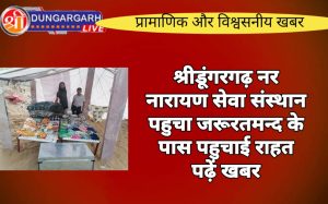 श्रीडूंगरगढ़ लाइव न्युज 5 अक्टूबर 2023 क्षेत्र कि अग्रणी सेवा संस्थान ने पहुचाई जरूरतमन्द को राहत नर नारायण सेवा संस्थान...