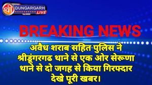 श्रीडूंगरगढ़ लाइव न्यूज़ 9 अक्टूबर 2023 श्रीडूंगरगढ़ पुलिस ने 43 पव्वे कितासर के पास बरामद किए। श्रीडूंगरगढ़ लाइव न्यूज।...