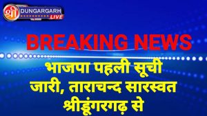 श्रीडूंगरगढ लाइव न्यूज़ 9 अक्टूबर 2023 राजस्थान विधानसभा चुनावों के लिए बहुप्रतीक्षित भाजपा प्रत्याशियों की पहली सूची भाजपा की केंद्रीय...